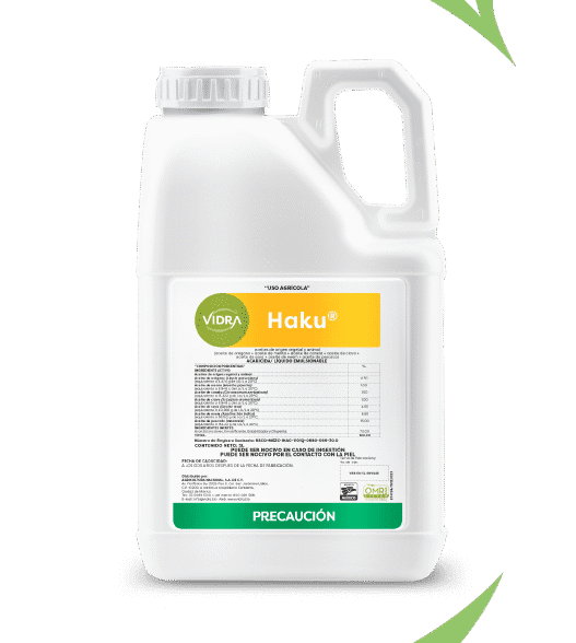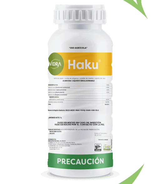 Haku® contains various oils of vegetable origin, such as oregano oil, peppermint oil, cinnamon oil, clove oil, soybean oil, neem oil, among other differentiated compounds.