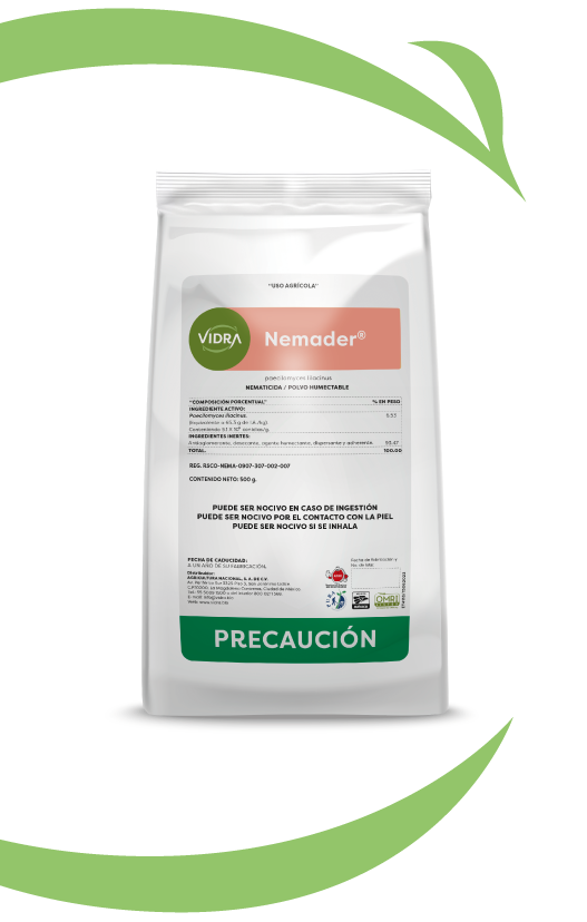 Nemader® is a microbial nematicide containing spores and mycelium of the fungus /Paecilomyces lilacinus/, which acts on the distinct biological stages of phytopathogenic nematodes, affecting hatching and the development of juvenile stages and adult nematodes.
