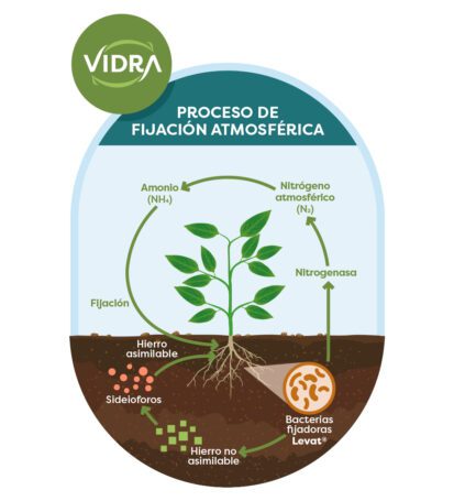 Levat®, es una herramienta biológica integral que combina la fijación de nitrógeno atmosférico con la producción de sideróforos y metabolitos promotores del crecimiento vegetal con el fin de generar cultivos más vigorosos y productivos y propiciar la formación de suelos llenos de vida.